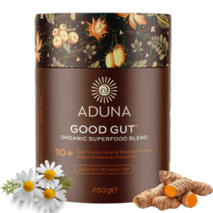 mešanica v prahu (Adunina Essential Superfood Formula: baobab v prahu* (29 %), mleta lanena semena, camu camu v prahu, inulin agave v prahu, pšenična trava v prahu, moringa v prahu, resasti bradovec v prahu), kakav v prahu, datlji v prahu, reishi goba v prahu, cimet v prahu, šisandra v prahu, ašvaganda v prahu. *Sestavina s certifikatom FairWild™