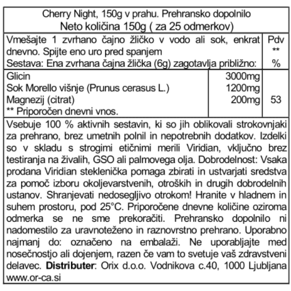 Vsebuje višnje, aminokislino glicin in magnezij.