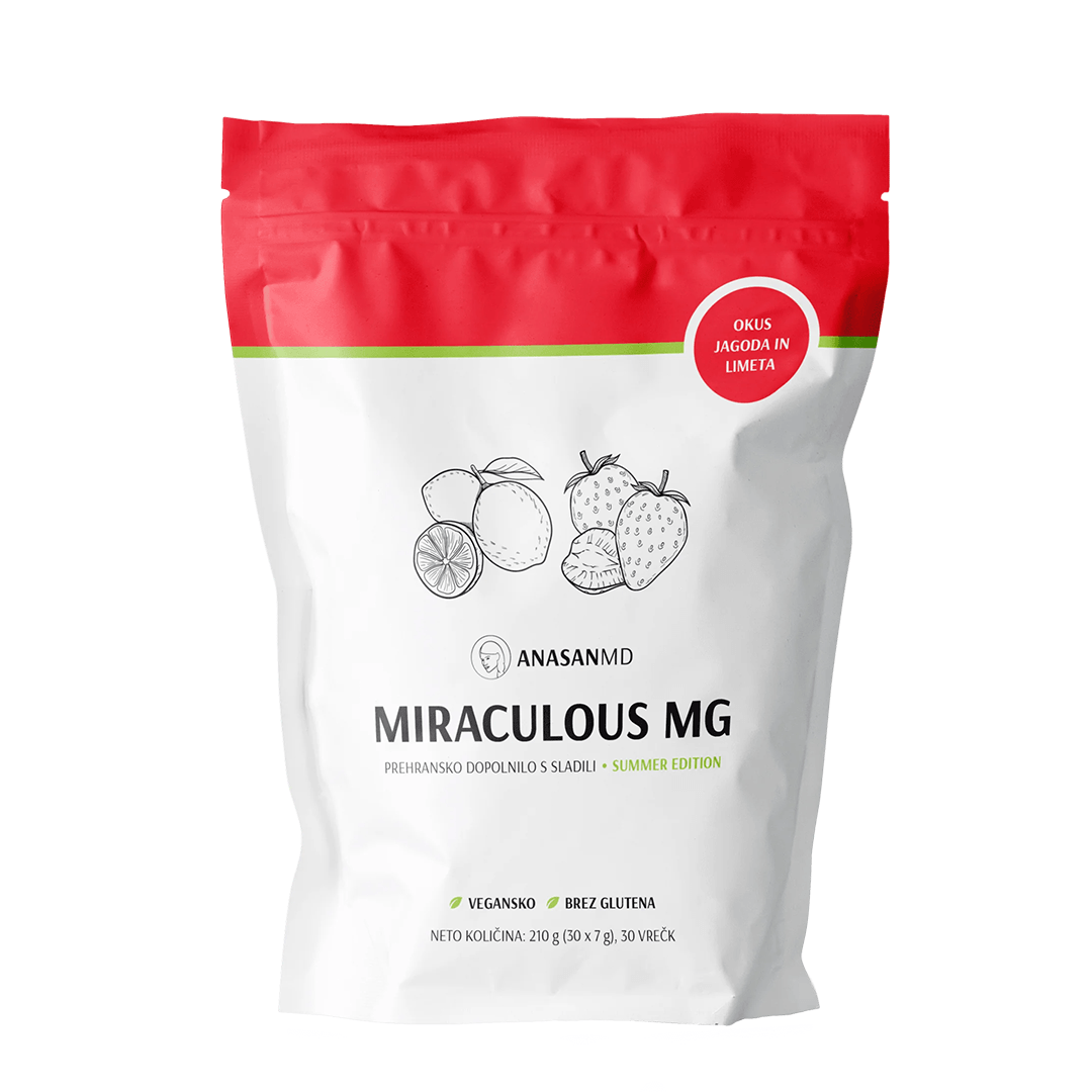 Tehnološko napreden in strokovno, s študijami podprt Magnezij MIRACULOUS MG Anasan MD, z okusom jagoda-limeta