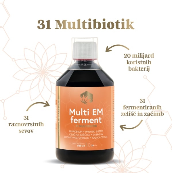 Multi EM ferment® je pripravljen v skladu z načeli tehnologije EM (Effective microorganisms), kjer za visokim številom različnih dobrodejnih mikroorganizmov stoji poglobljeno znanje o njihovi pravi kombinaciji za blagodejno delovanje na zdravje.